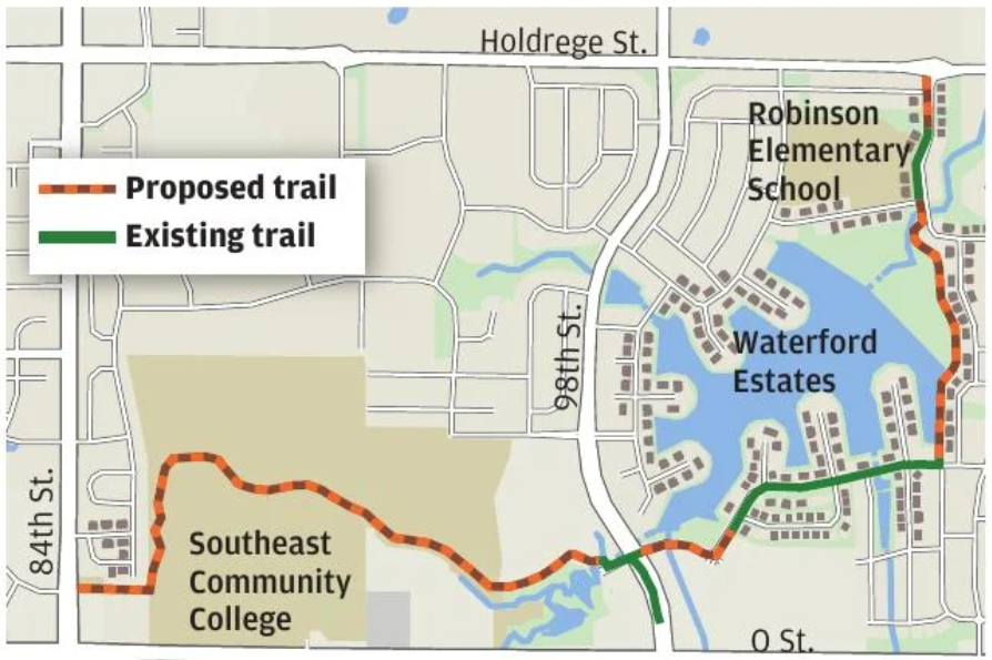 Several trails have been in the news recently. In the Lincoln Journal Star from February 24th we have a preview of the route planned for the Waterford trail around the lake. Here are a few of the takeaways from the article: It’s been planned for more than 25 years, included in the design for the development, and shown in public plans since 2018, according to Lincoln Parks and Recreation director Maggie Stuckey-Ross and Planning and Development Director David Cary. Despite this, some current homeowners who will have the trail passing between their back yards and the lake are expressing surprise. They do not apparently see it as an amenity. The lake was built and is maintained using NRD funding, which means we taxpayers support it. A piece of the trail along the south side was built when those properties were developed, but most of it is scheduled to be built next year. I’m not sure there will be public access from the trail in the green space further north on the east side of the lake, below Robinson Elementary School, but I hope so. This illustrates the challenge often present when developing trails. Like the MoPac gap. Local landowners, or even just those in the neighborhood and not directly adjacent, are sometimes opposed to the development of public rights of way and easements. What’s different about this mindset from that of The Right to Roam in England where land owners are viewed more as stewards? Those roaming are expected to be responsible ramblers. How did this difference in mindset come about? Stuckey-Ross and Cary go on to say that “Experience across Lincoln shows that fears of trespass and loss of privacy are common before trail construction but rarely translate into actual problems once trails are in place.” I think if the affected neighbors could talk to others living next to similar trails, they could feel less threatened. The article quotes city officials who say that the proposed alignment was “intentionally planned to minimize conflicts between trail users and vehicles” and the trail is “not expected to become a high-volume regional corridor.”